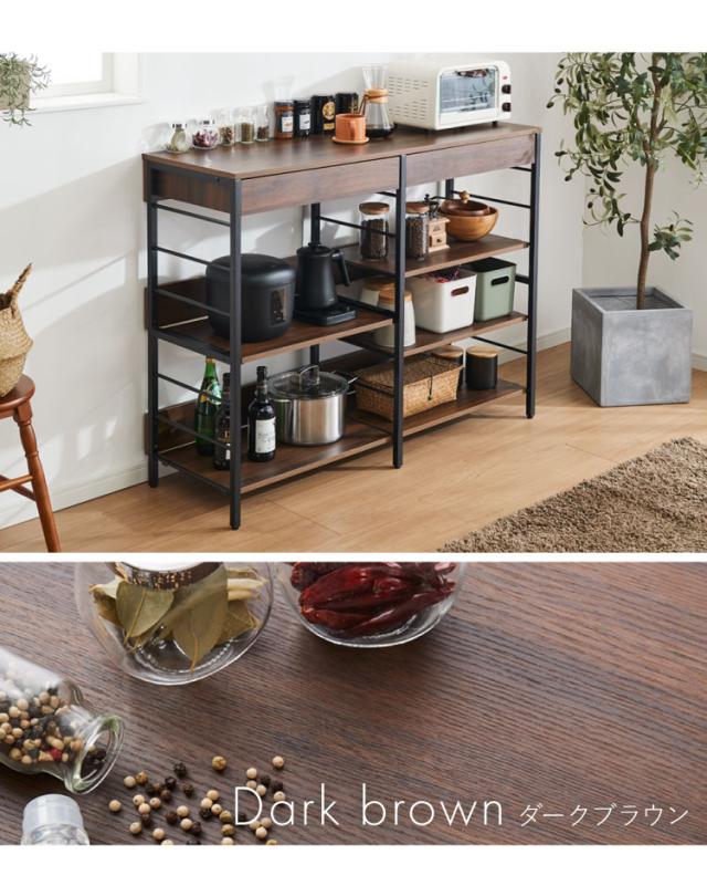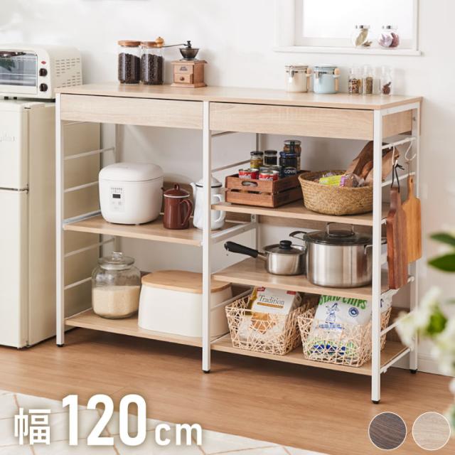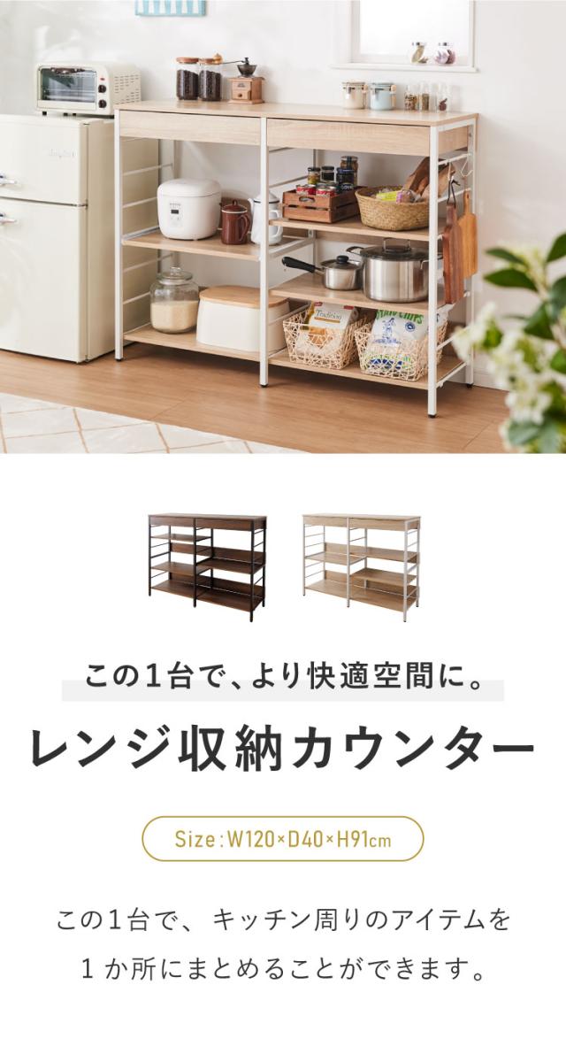 キッチンカウンター ゴミ箱上ラック 収納棚付き レンジラック ダストボックス キッチンラック レンジ台 おしゃれ 北欧 シンプル キッチン 収納 間仕切り ゴミ箱収納 120cm幅 背面収納ありタイプ(代引不可)【送料無料】