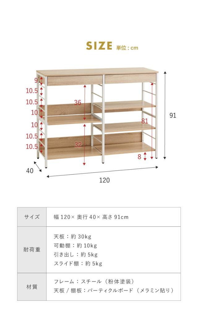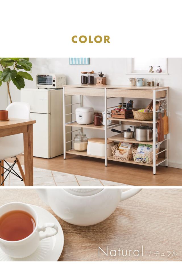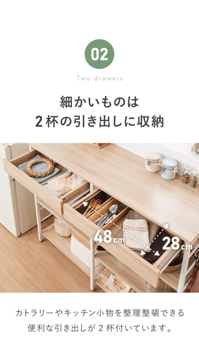 ・カトラリーやキッチン小物を整理整頓できる便利な引き出し(2杯)付き。