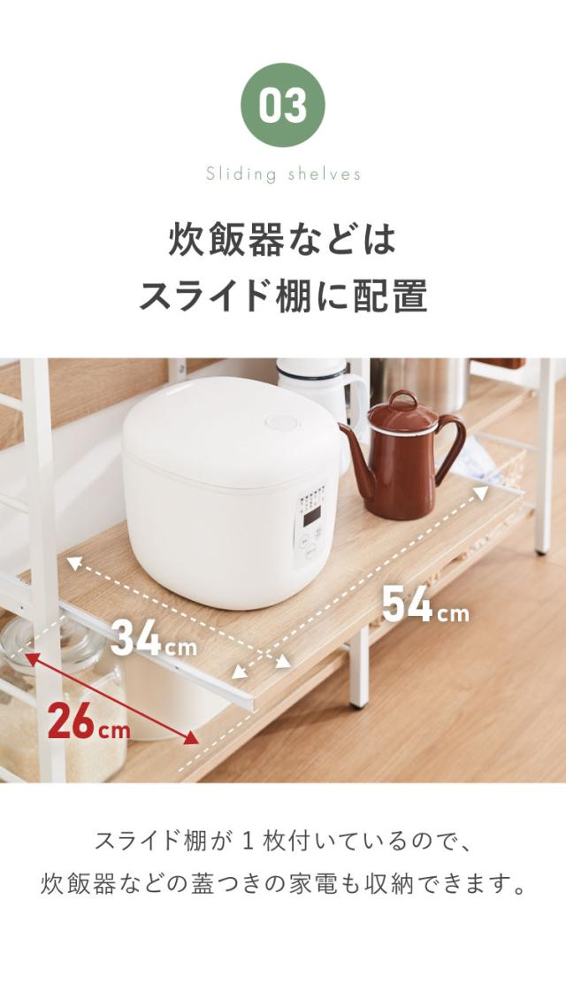 ・キッチン家電、雑貨、食器類などがまとめて収納できます。