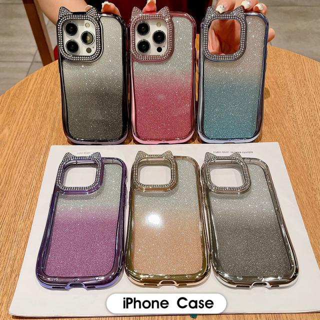 ねこみみ 猫耳 アイフォン16ケース アイフォン14ケース iPhone 15pro Maxケース iPhone 15 Proケース スマホケース クリアケース 2WAY シンプル iPhone 16 pro ケース 背面透明 iphone 14 Pro Maxカバー グラデーション アイフォン15