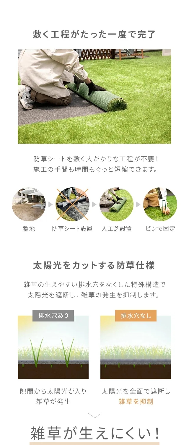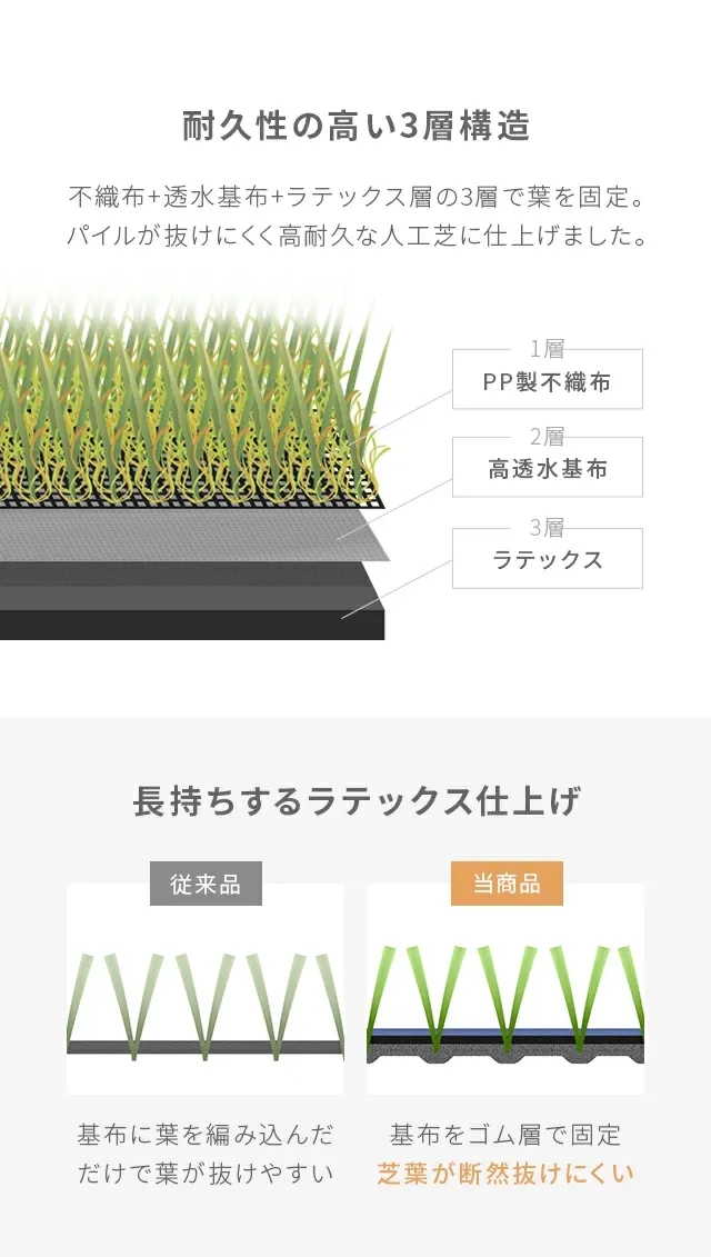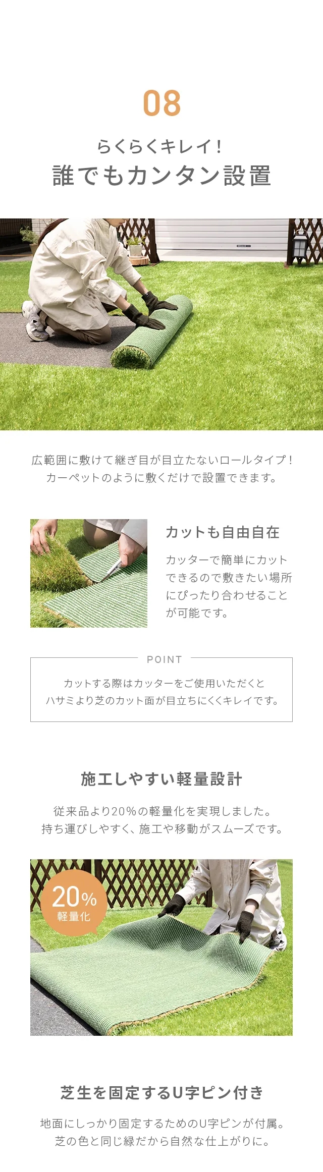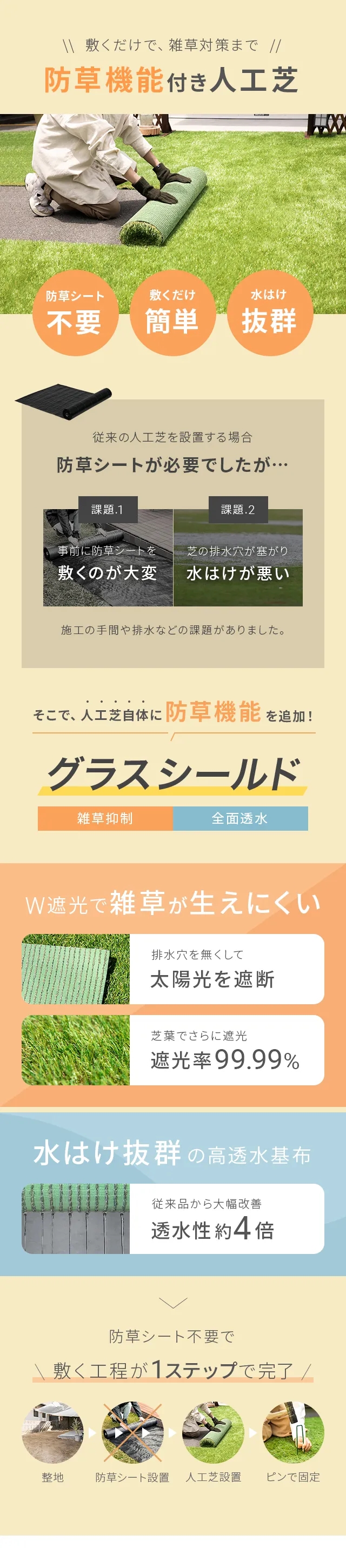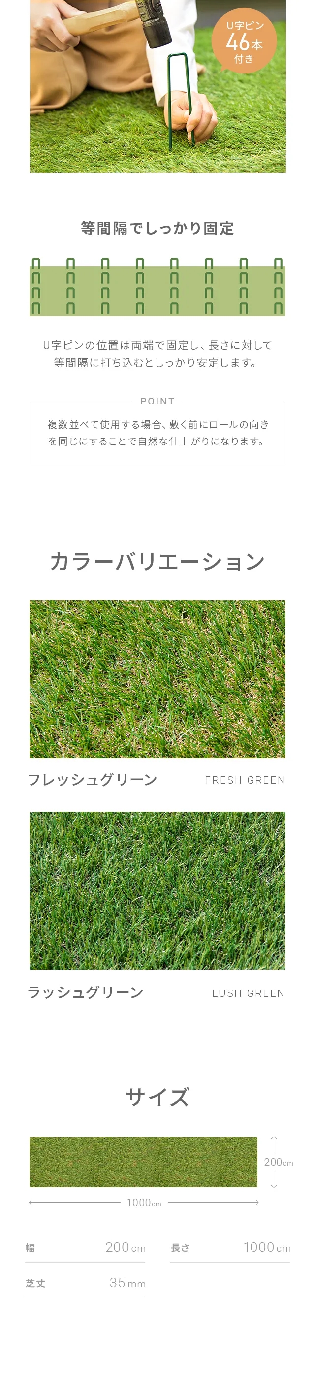 人工芝 ロール 2m×10m 芝丈35mm 防草タイプ ロールタイプ 芝生マット 人工芝生 人工芝ロール 芝生 防草仕様 人工 芝 固定ピン 庭 ベランダ テラス バルコニー ガーデニング 屋上緑化 u字ピン 水はけ 人口芝