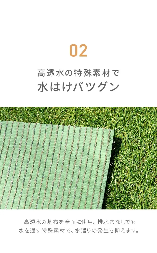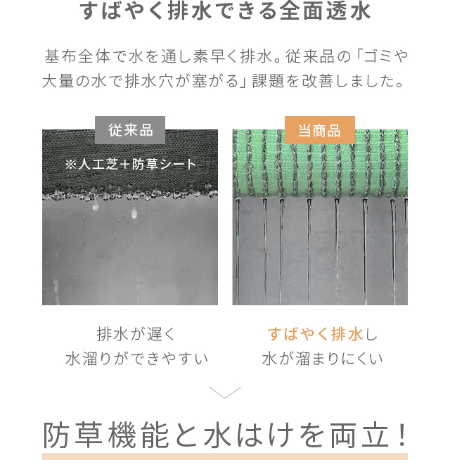 ・通常の雨程度は問題ございませんが、一度に大量の水を流した場合、水はけが悪い可能性がございますのでご注意ください