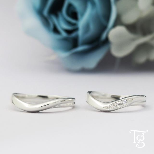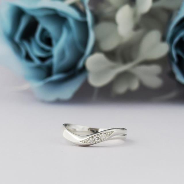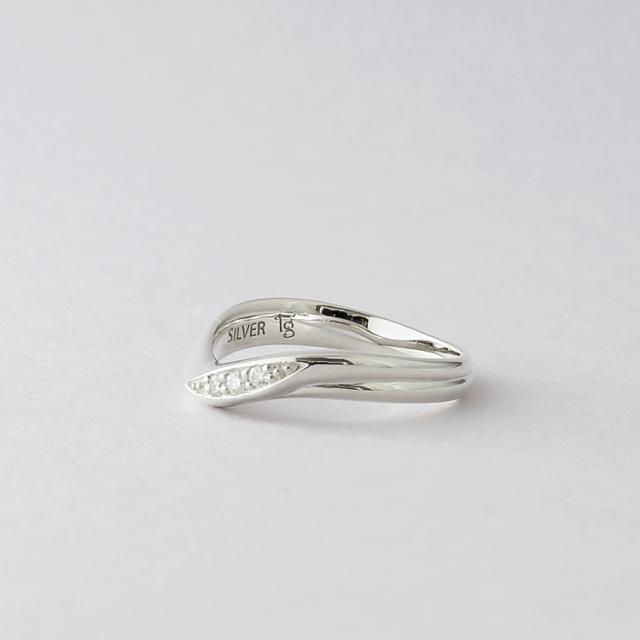 緩やかにカーブしたV字ラインがエレガントなシルバーリング。
