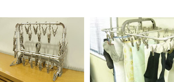 内蔵フックを使えばドアや鴨居に掛けられ室内干しに最適