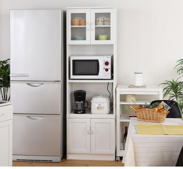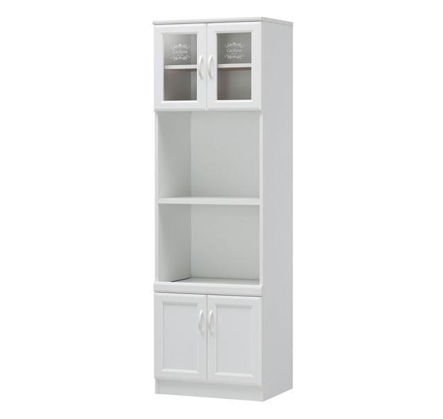 レンジ台 食器棚 幅57cm 高さ181cm 北欧風 ホワイト 白 スライド棚 コンセント付 キッチン 家電 収納 デザインロゴ 白井産業(代引不可)【送料無料】