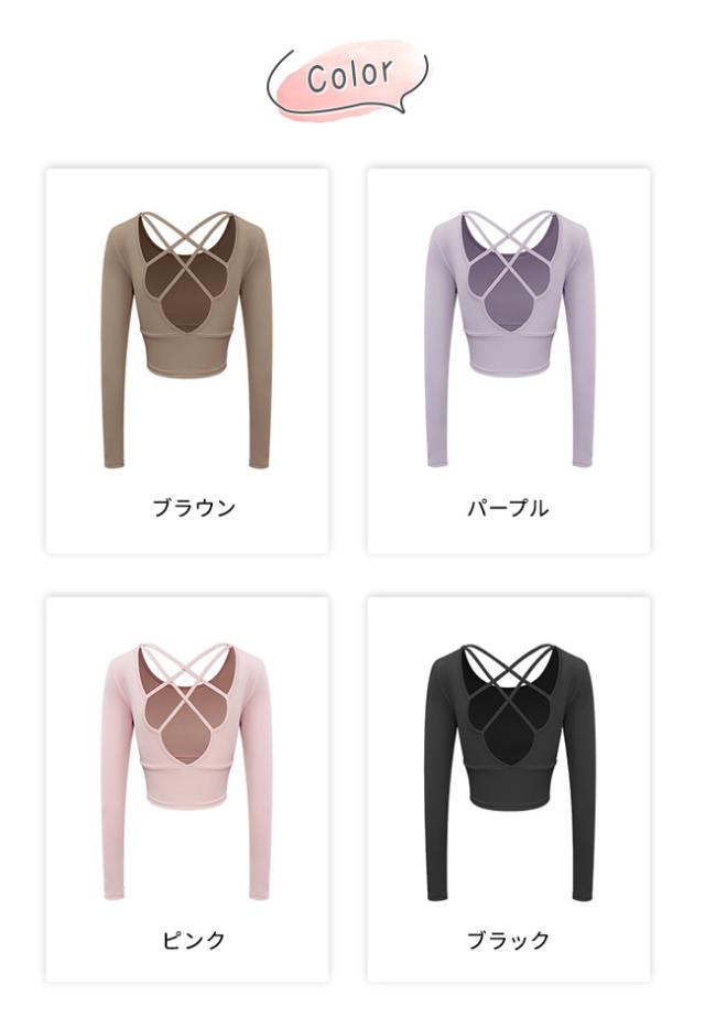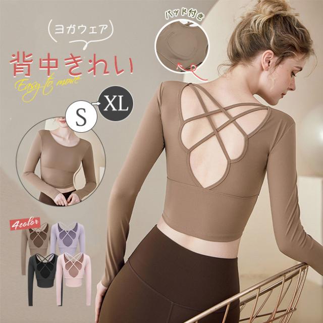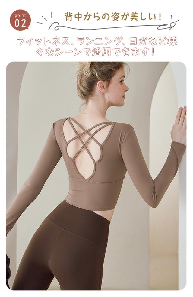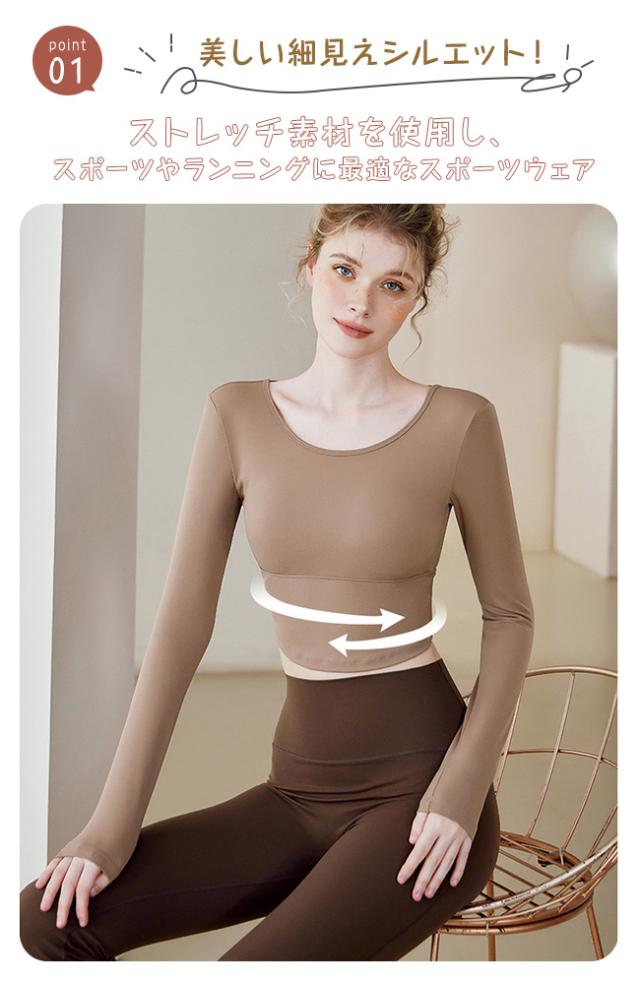 秋冬 ヨガウェア オシャレ レディース トップス 吸汗速乾 Tシャツ ホットヨガ パッド付き ストレッチ ヨガ 長袖 ジム スポーツ