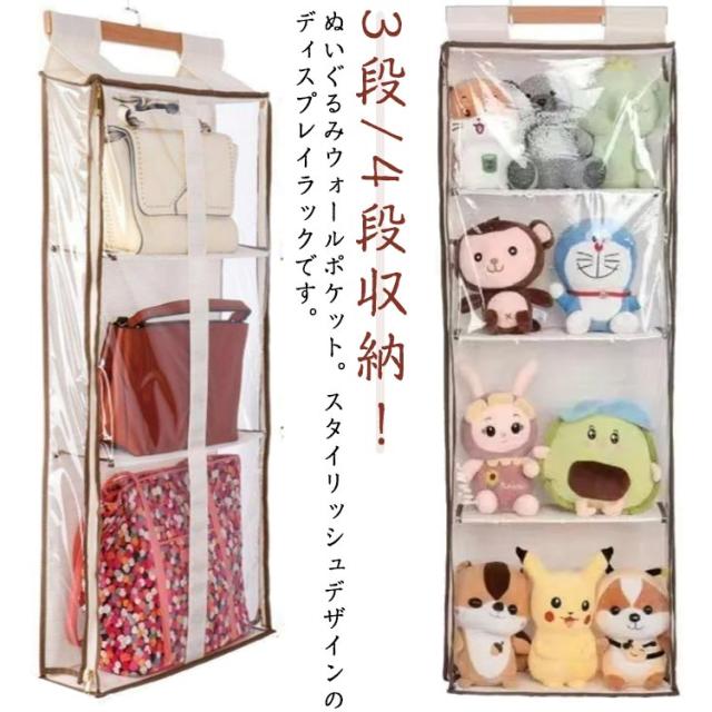 ぬいぐるみウォールポケット ぬいぐるみ 収納 ディスプレイ コレクションケース 3段/4段 収納ケース 見せる収納 小物 ドア掛け収納式ポケット 大容量 壁掛け 人形 壁掛け収納 ドア掛け ウォールハンガー 推し おもちゃ 収納 吊り下げ収納 透明 おしゃれ