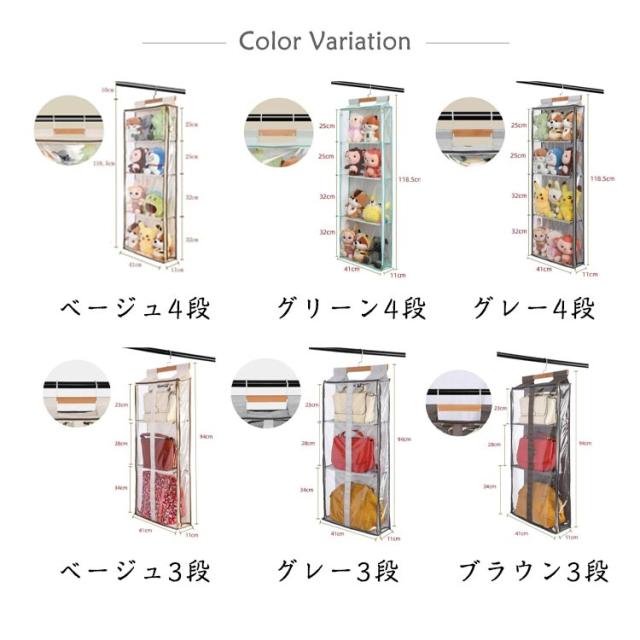 | 3段/4段収納!ぬいぐるみウォールポケット。スタイリッシュデザインのディスプレイラックです。 左右から開閉可能な両開きファスナー、お手入れと取出しがより便利、入れ替えなども楽々! 密閉設計で湿気やホコリを遮断し、大切なコレクションを守ります。 取付け場所はドア、壁、キャビネットなどに。 ハンガーとフックが付属しているので、お好みの場所にすぐに設置できます。 広々とした空間を保ちながら、ぬいぐるみや小物などをすっきりと収納できます。 | |
