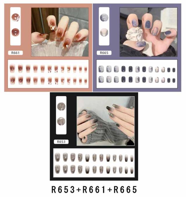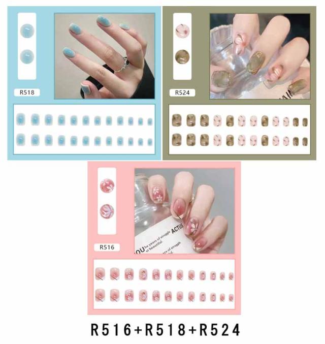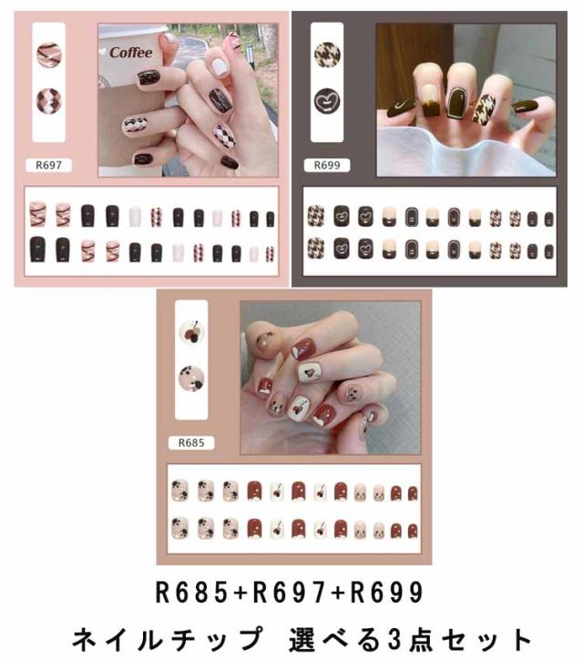 | ネイルチップ 選べる3点セット 爪に合わせて貼るだけで完成! 初心者はもちろん、自宅でDIYネイルや美容室サロンなどにもおすすめ。 | |