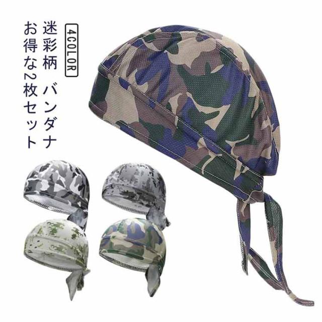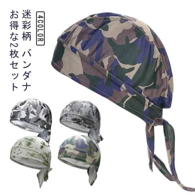 バンダナ 2枚セット バンダナキャップ インナー キャップ レディース メンズ 職人 料理人 帽子 サイクリング ジョギング バイク 自転車 迷彩柄 黒 汗止め サバイバルゲーム サバゲー 汗取り ヘルメット インナー 吸汗速乾 フリーサイズ 作業 飲食 送料無料 男女兼用