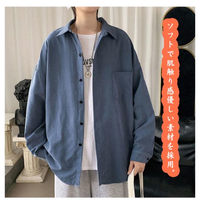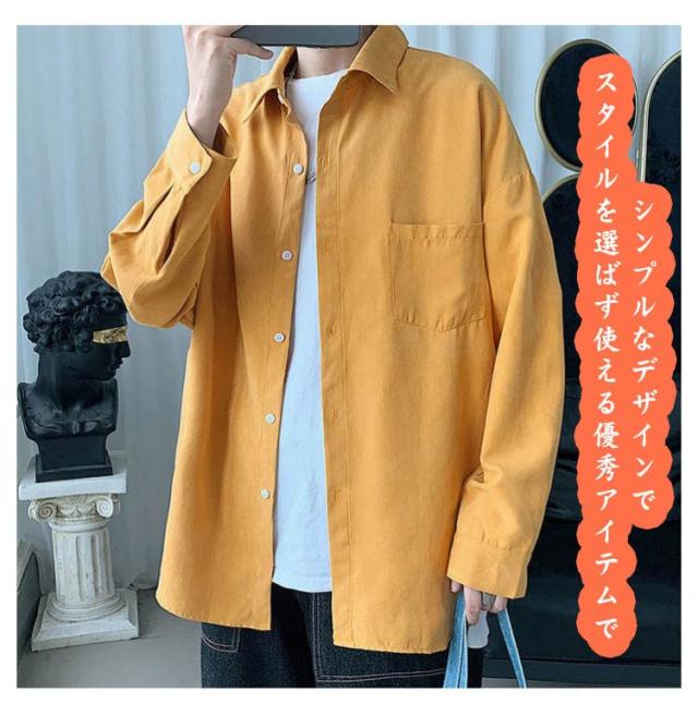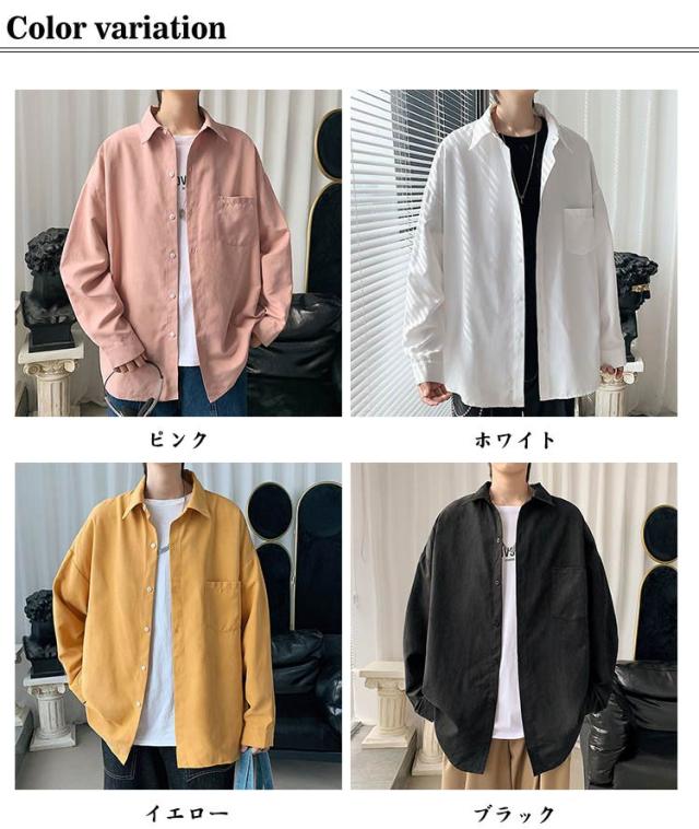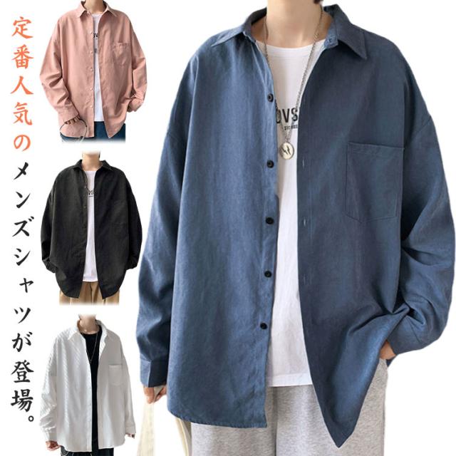 長袖シャツ メンズ 厚地 カジュアルシャツ おしゃれ 無地 長袖 白シャツ ワイシャツ 大きいサイズ 秋服 長袖シャツ 長袖 ゆったり オーバーサイズ 開襟 トップス アウター 春 夏 秋 通勤 通学 送料無料