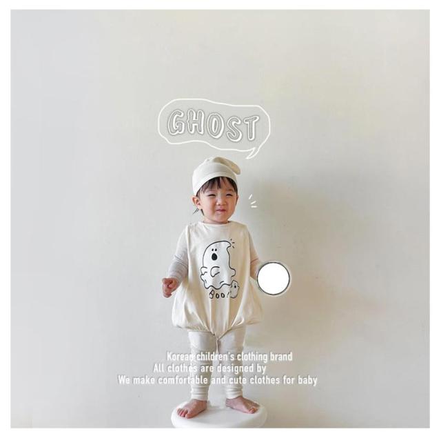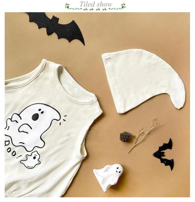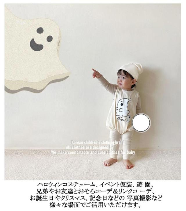 2点セット ハロウィン コスプレ 幽霊 鬼 おばけ 衣装 赤ちゃん服 子供 男の子 女の子 ベビー服 ロンパース 新生児 帽子付き 可愛い 着ぐるみ 仮装 コスチューム つなぎ 変装 カバーオール 新生児 出産祝い 写真撮影 66 73 80 90CM