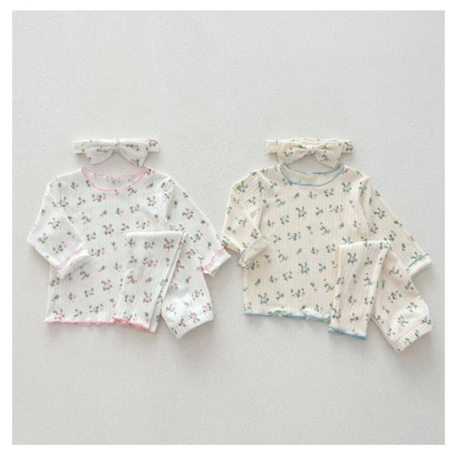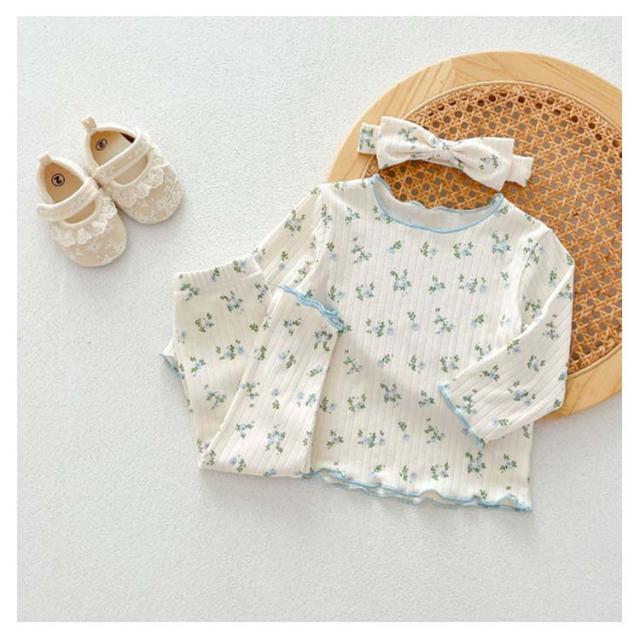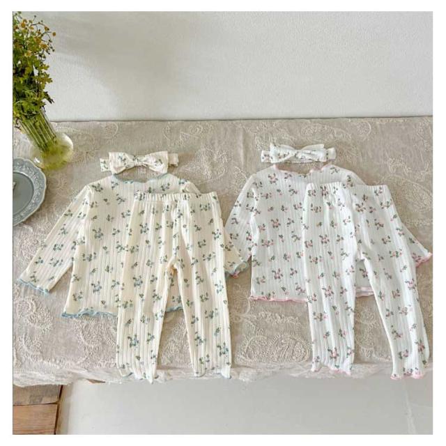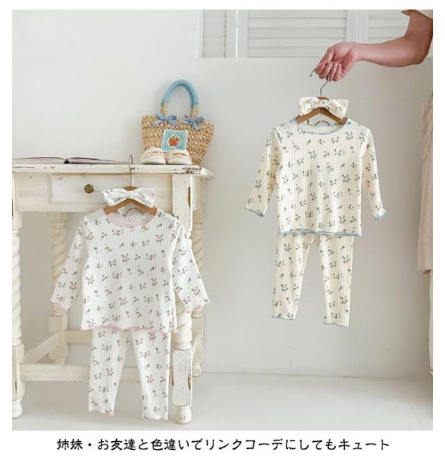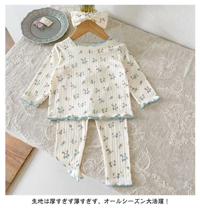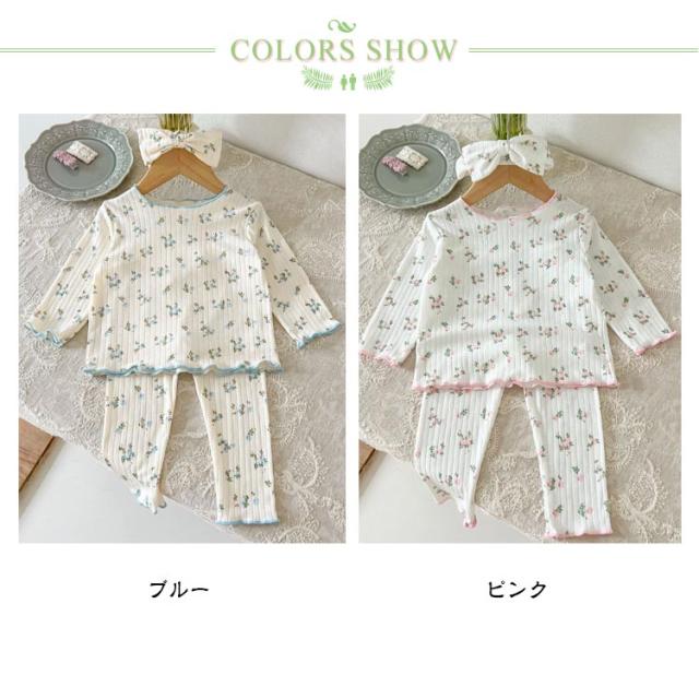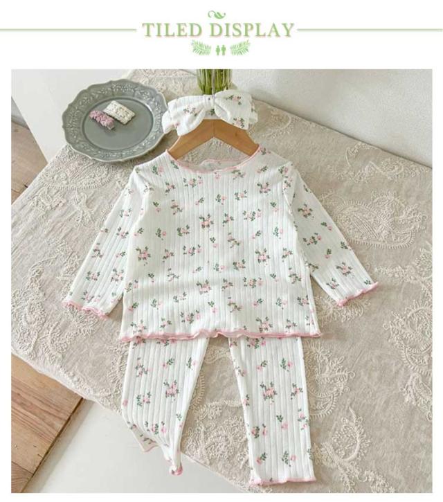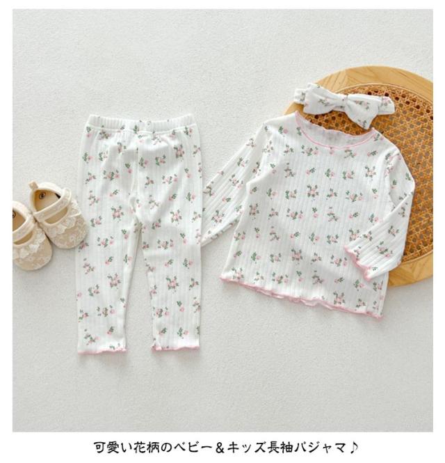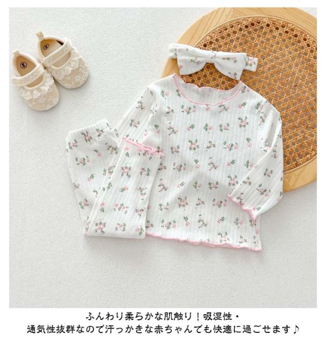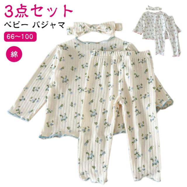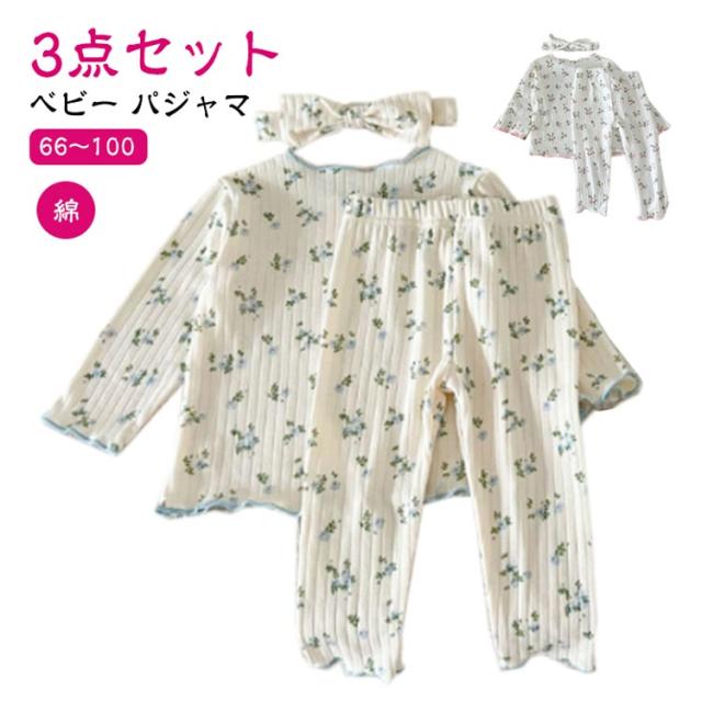 3点セット ベビー パジャマ 長袖 綿 キッズ ルームウェア 上下セット ヘアバンド 66 73 80 90 100cm 女の子 長袖パジャマ 子ども 子供服 ベビーパジャマ 部屋着 寝巻き キッズパジャマ コットン 赤ちゃん かわいい 春秋 花柄