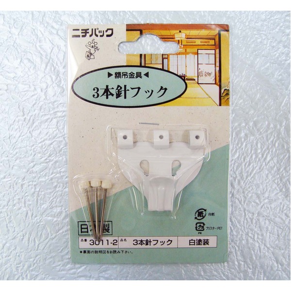 壁掛け用金具(額吊り金具)5kg ■3本針フック3011-2(合板・木壁・石こうボード用) ホワイト【5個セット】(代引不可)
