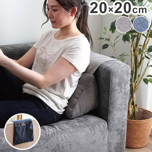 背もたれ クッション 三角 収納付き ポケット 省スペース コンパクト ソファ ソファー 収納 フロアクッション 枕 背当 スマホ シンプル 国内綿入れ加工 オールシーズン インテリア おしゃれ 北欧(代引不可)【送料無料】
