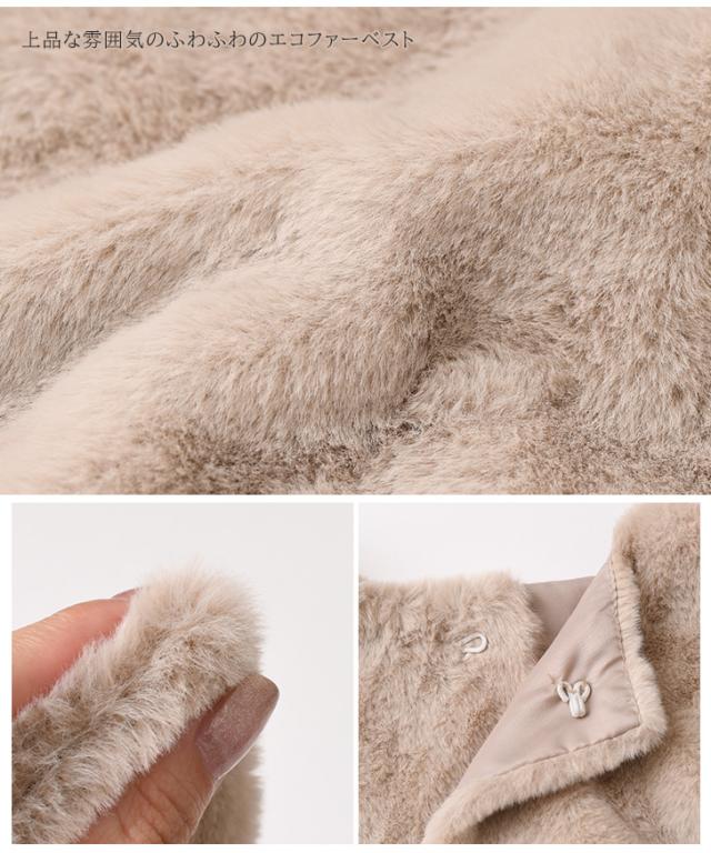 ファージレ エコファーベスト ロングベスト フェイクファージャケット チョッキ ジャケット コート ノースリーブ タンクトップ トップス 上着 クロップド丈 裏地 裏地あり 裏地付き ボリューム 袖なし 襟なし ミドル丈 流行 トレンド 流行り 秋 冬 春 冷え対策 保温 柔らかい やわらか フワフワ モコモコ 着る毛布 ガーリー フェミニン 衿なし 街着 シンプル 20代 30代 40代 50代 女性 母 ママ プレゼント ギフト 贈り物 クリスマス クリスマスプレゼント 誕生日 誕プレ バレンタイン デイリー オケージョン 学校行事 セレモニー パーティー 二次会 お呼ばれ リッチ エレガント 大人リッチ 女子会 忘年会 新年会 イベント ボタン ボタン付き スプリングフック カギホック
