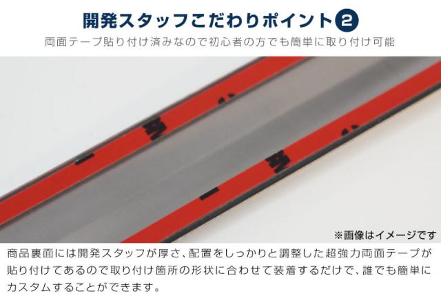 車体形状のラインに合わせた洗練されたデザインで形成しており、サイドビューに美しい高級感をプラスします。