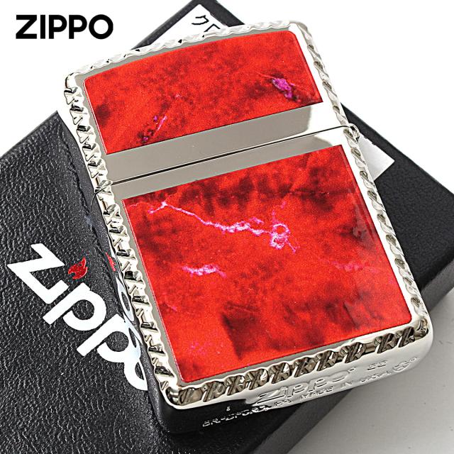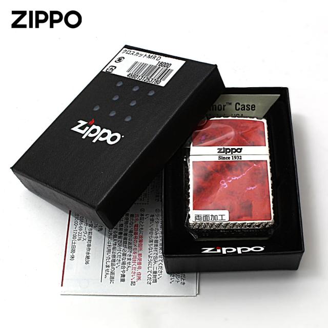 Zippo ジッポライター アーマー 大理石調 マーブル柄 レッド クロスコーナカット 両面加工 Cross Cut Series MRD メール便専用商品