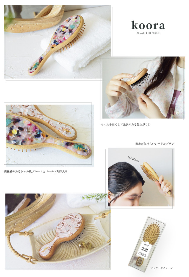 koora Paddle Brush R04-1114 R04-1115 Latte Mix【グローバルアロー global arrow ヘアブラシ パドルブラシ マッサージ 頭皮ケア ヘアケア くし 艶髪 ヘッドスパ 頭皮マッサージ スタイリング ブラッシング ヘアーブラシ 母の日 父の日 敬老の日 クリスマス xmas】