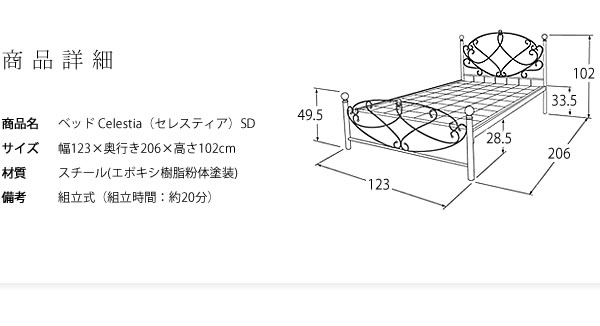 ベッドフレーム セミダブルベッド セミダブル SDサイズ ハイタイプ スチール アイアン メッシュタイプ アンティーク プリンセス 姫系 おしゃれ 寝室 子供部屋 セレスティアSD BSK-906SD 2色対応