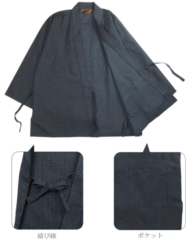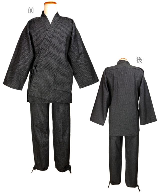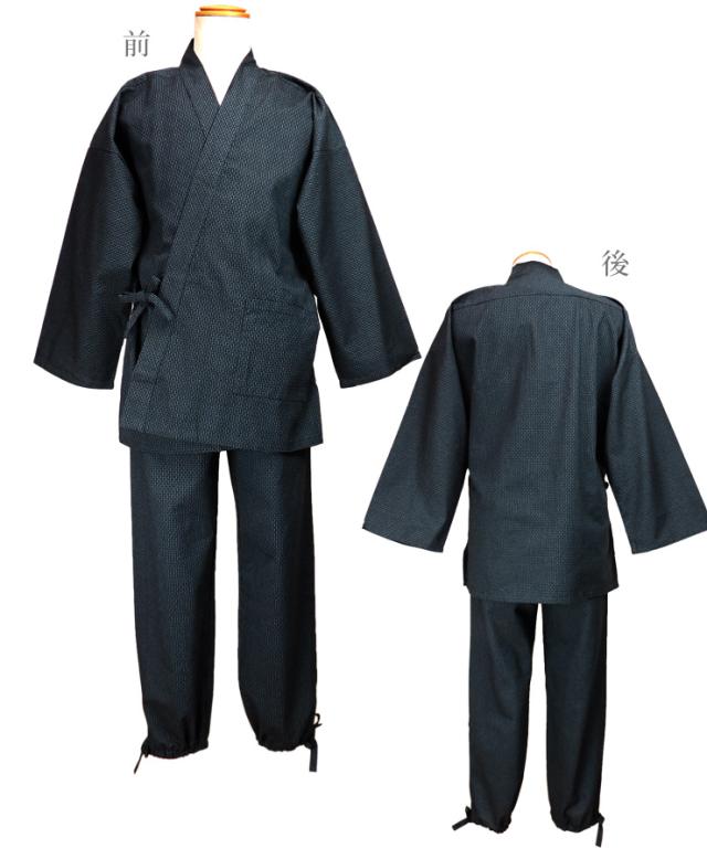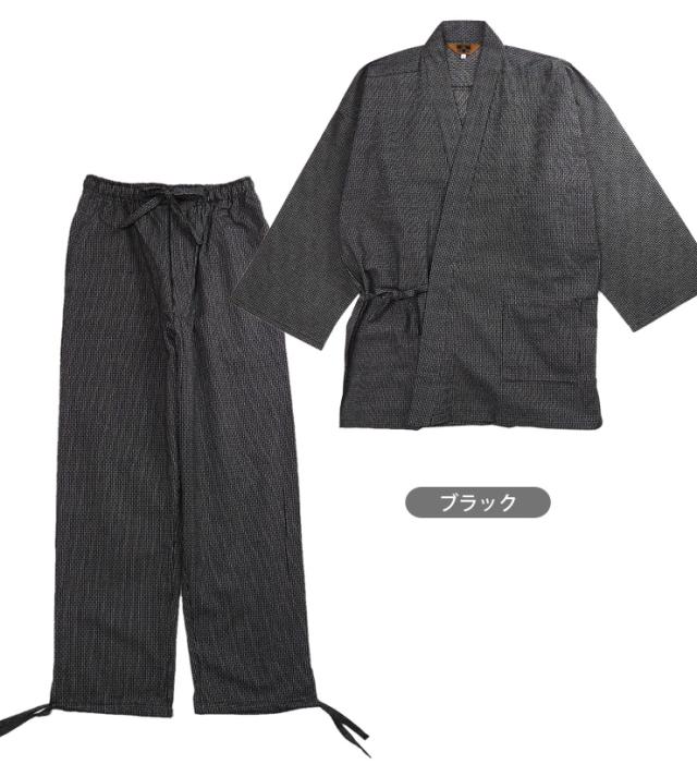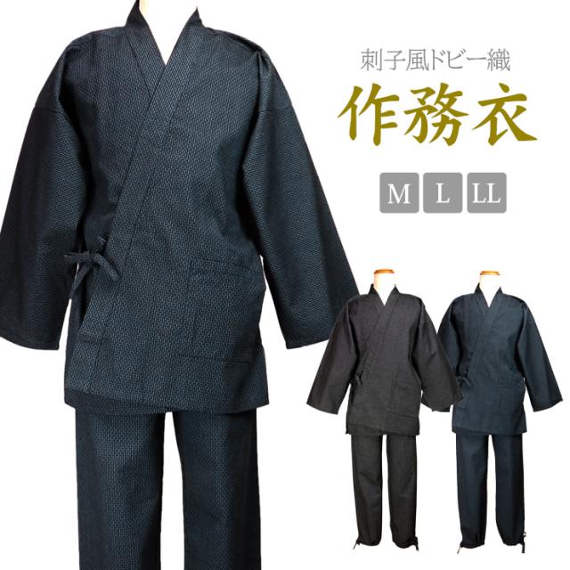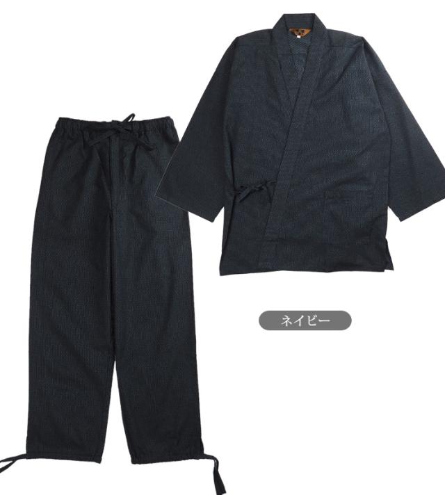 【大きいサイズあり】刺子風 ドビー織り 作務衣 メンズ 秋冬春 綿100% ブラック ネイビー M L LL 上下セット 和装 No.2703