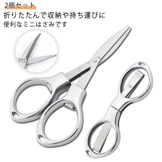 携帯用 ミニハサミ トラベル 2個セット 折りたたみ キャンプ 小型 軽量 コンパクト ステンレス製 旅行用 裁縫用 持ち運び便利 釣り アウトドア 防災 はさみ 家庭用