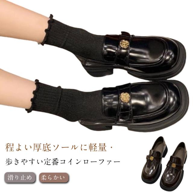 厚底ヒール 抗菌 ローファー シンプル 太ヒール 靴 通学 レディース 通勤 滑り止め ローファー コーデ 秋 軽い 痛くない 春 合皮 夏 冬 痛くない 柔らかい 厚底靴 立ち仕事 お仕事 疲れない 軽量 オフィス 学生 ブラウン 黒 就活 就職