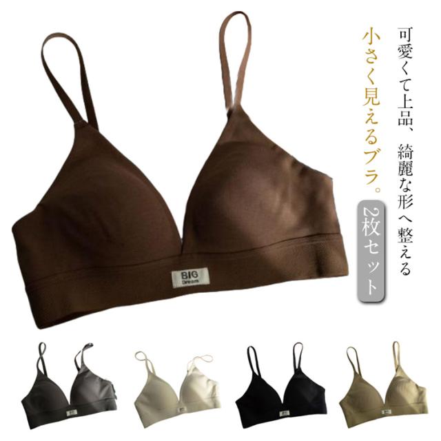 ブラジャー 下着 2枚セット 胸を小さく見せるブラ 背中 ブラ シームレス 2枚セット 脇高 ノンワイヤー かわいい 小さく見せるブラジャー 大きな胸を小さく見せるブラ 補正下着 脇肉 胸が小さく見えるブラ スッキリ 谷間メイク