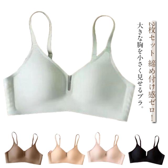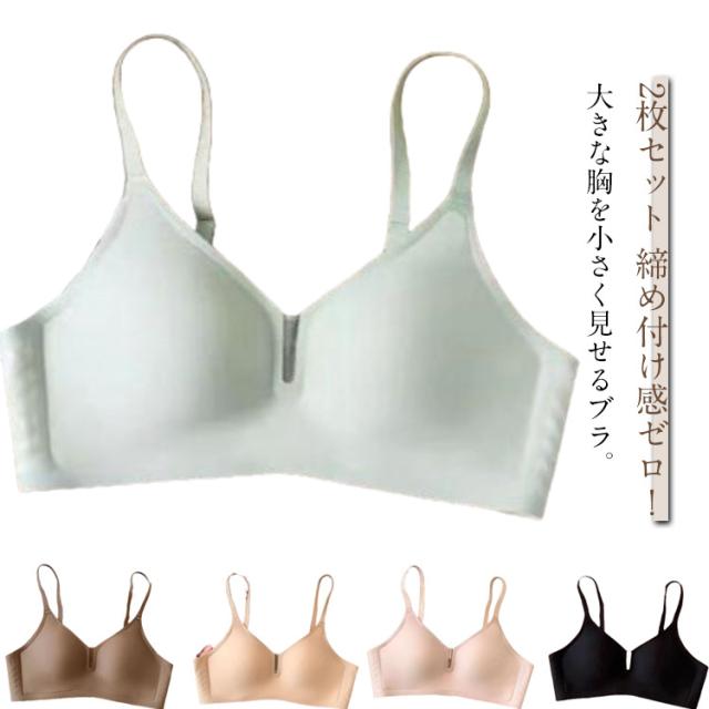 補正ブラ 着痩せ 胸を小さく見せるブラ ノンワイヤーブラ 補正下着 小さく見せるブラ 美胸 脇高 フルカップ ブラジャー レディース 2枚セット インナー 下着 すっきり 脇肉 2枚セット スリム ブラ 着せブラ