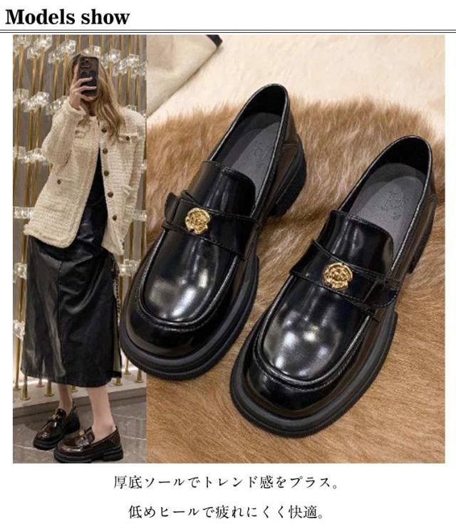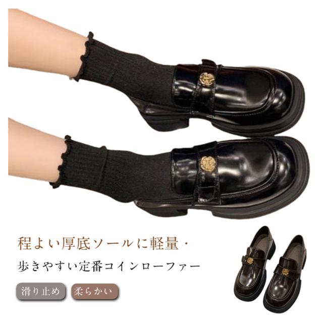 厚底ヒール 太ヒール 消臭 靴 軽量 ローファー 抗菌 シンプル 冬 レディース 柔らかい 痛くない 軽い 疲れない コーデ オフィス 夏 秋 通学 滑り止め お仕事 厚底靴 立ち仕事 ローファー 春 通勤 痛くない 学生 ブラウン 黒 就活 就職