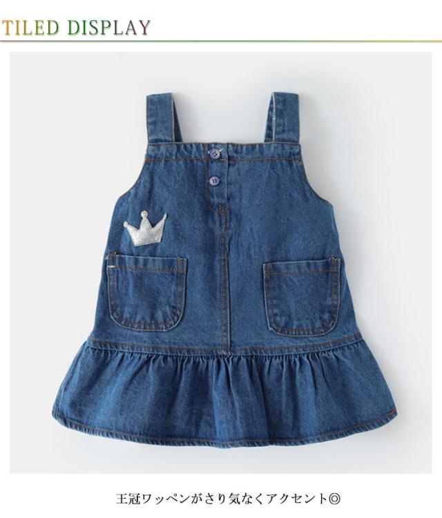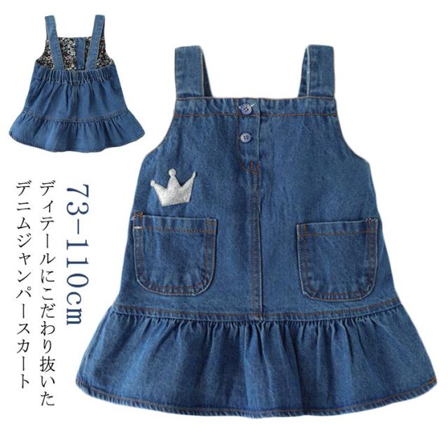 子供服 デニム 女の子 キッズ 80 デニムワンピース サロペット スカート デニムスカート 110 フリル 90 可愛い 73 王冠 キッズ 100 ジャンパースカート ポケット付き ガールズ 通園 通学 お出かけ ギフト プレゼント