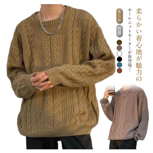 ニット 厚手 セーター ニットセーター 冬 クルーネック 長袖 メンズ 長袖ニット 服 ニットソー ケーブルニット モックネック 軽量 セーター 柔らか 無地 トップス 秋服 メンズ おしゃれ 冬服 冬物 秋冬 ファッション 20代 30代 40代