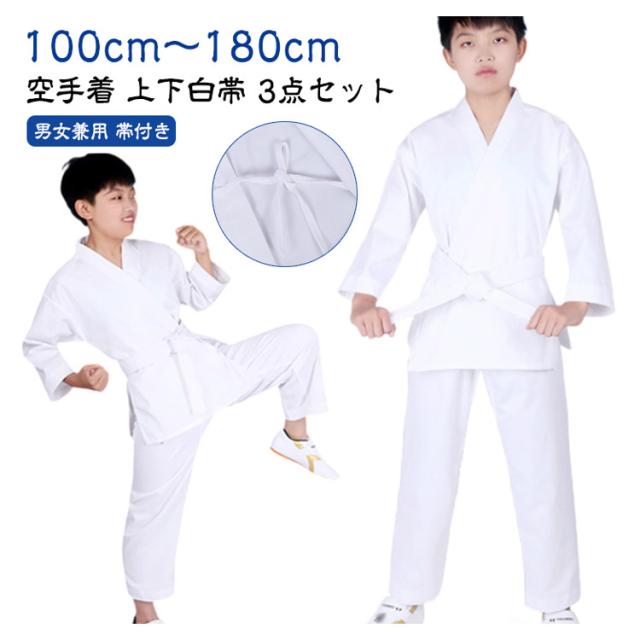 入門者向け 大人 3点セット 子供 空手衣 上下白帯 100-180cm 空手着 伝統派 ジュニア 空手道着 空手 空手着 男女兼用 空手スーツ 子ども 練習用 道着 授業用 合気道 柔道授業 柔道着 道衣 中学生
