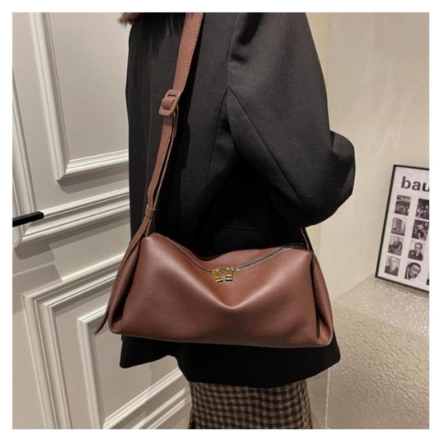 合皮 カバン ボストンバッグ ショルダーバッグ 小さめ 高級感 レディース 肩掛け 小さい バッグ ファスナー 斜め掛け 幅広肩ベルト 大容量 ファッションバッグ ブラック バックル付き 通勤 デート 肩掛けバッグ ショルダーバッグ ブラウン