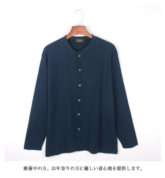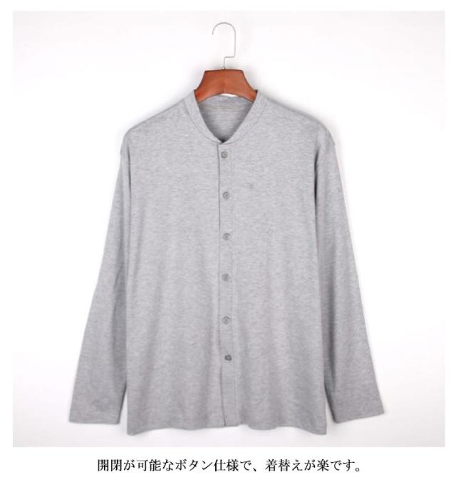 介護服 インナーシャツ 肌着 前開き ルームウェア 長袖 メンズ Vネック Tシャツ 入院 下着 介護用 無地 吸汗速乾 高齢者 手術 介護服 部屋着 ゆったり 男性用 大きいサイズ 春秋冬