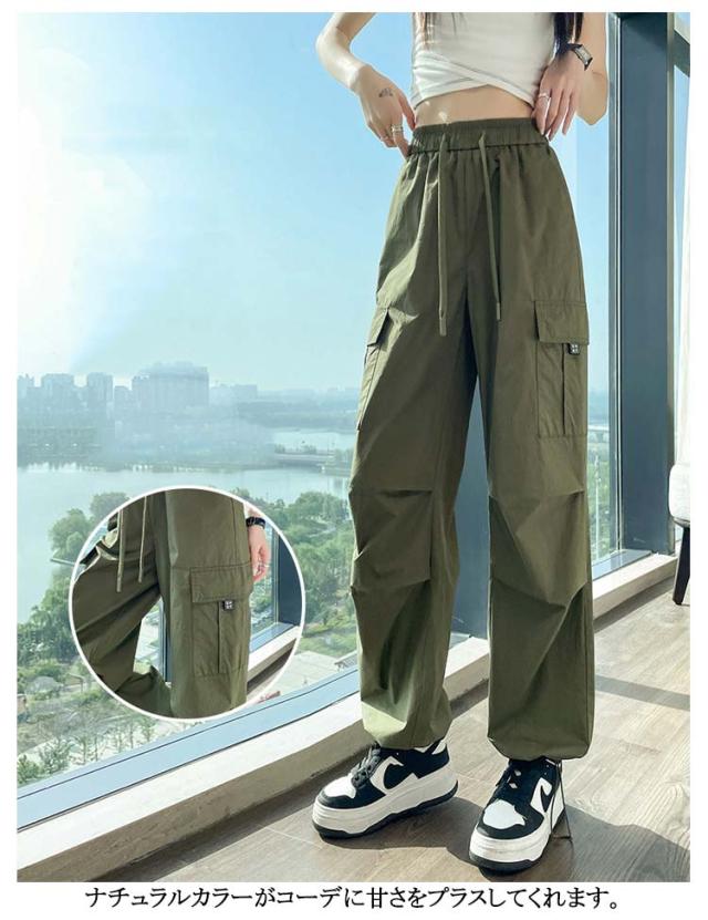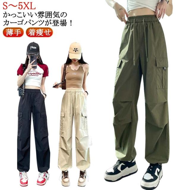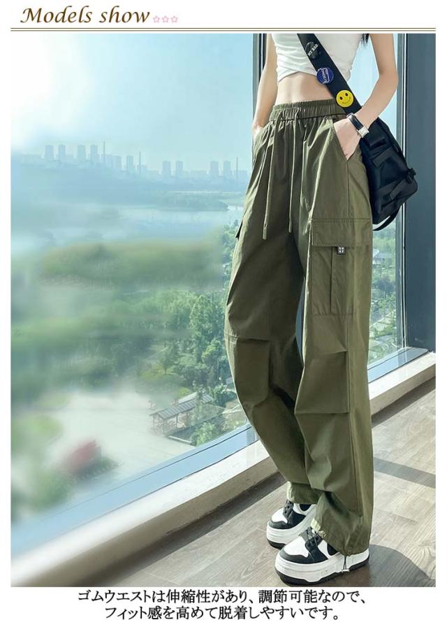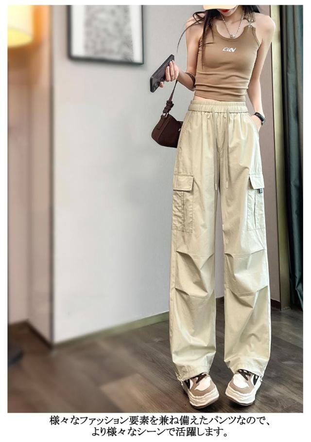 夏 ズボン ボトムス レディース かっこいい ワイド ロングパンツ パンツ 春 薄手 カーゴパンツ 秋 ゆったり 体型カバー 無地 ウエストゴム ダンス用 動きやすい 女性用 シンプル 韓国ファッション カーゴパンツ 大きいサイズ ダンス衣装 カッコイイ 着?せ ギフト