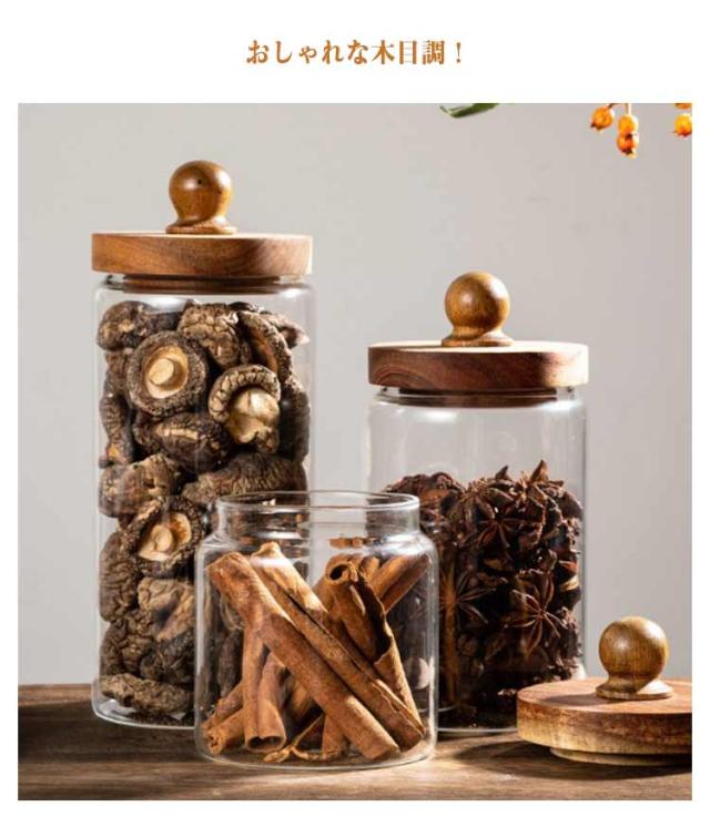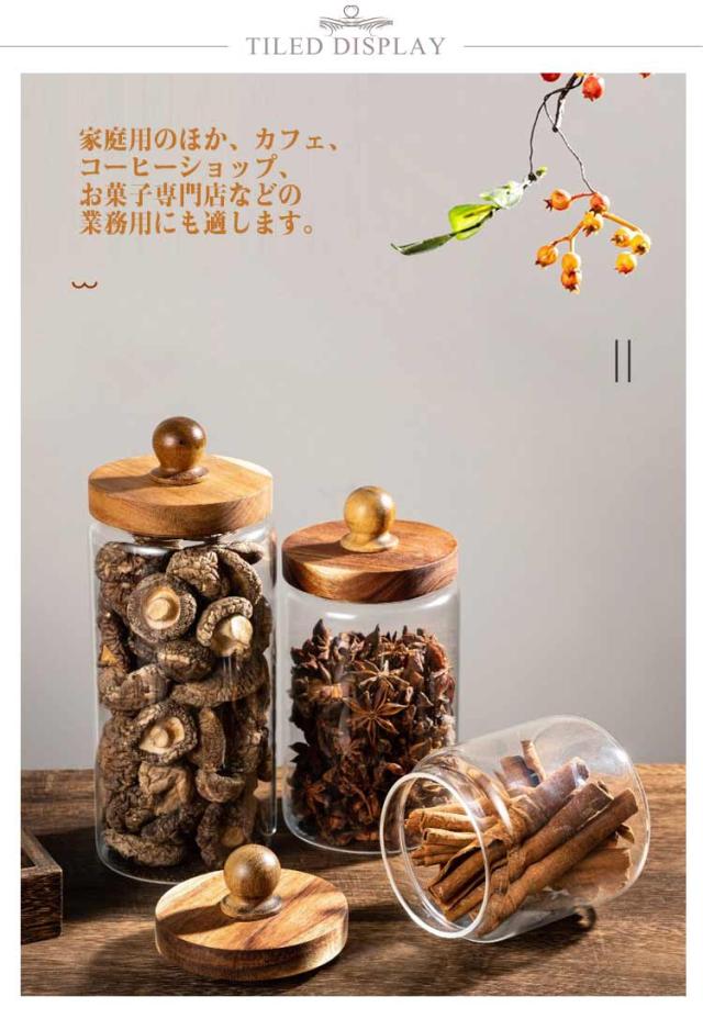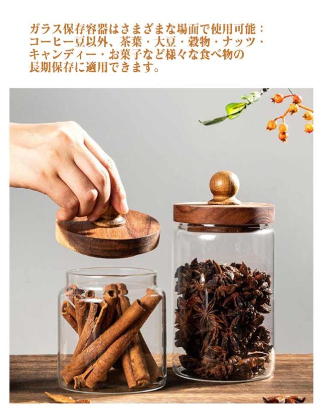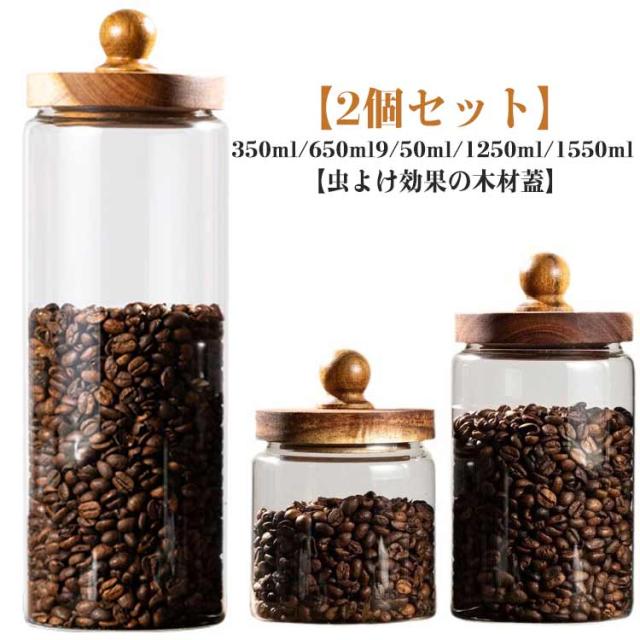 7サイズ ウッド 2個セット 保存容器 おしゃれ 保存容器 キャニスター 耐熱ガラス 2個セット ガラスキャニスター 木の蓋 コーヒー豆 虫よけ効果の木材蓋 茶入 調味料入れ 北欧 インテリア 可愛い おしゃれ