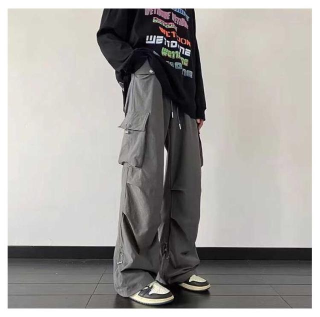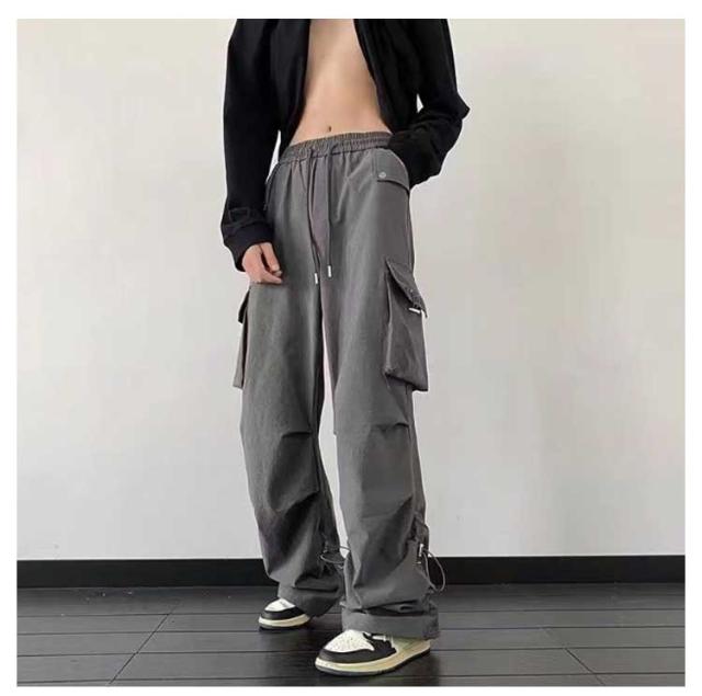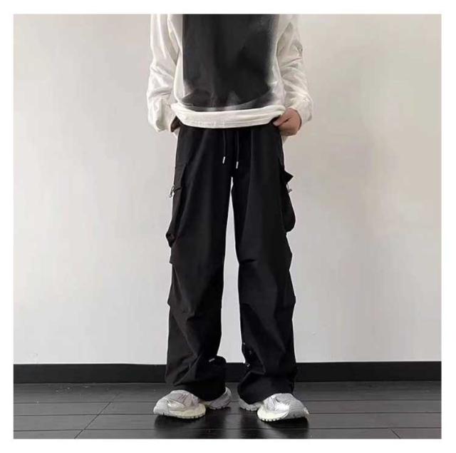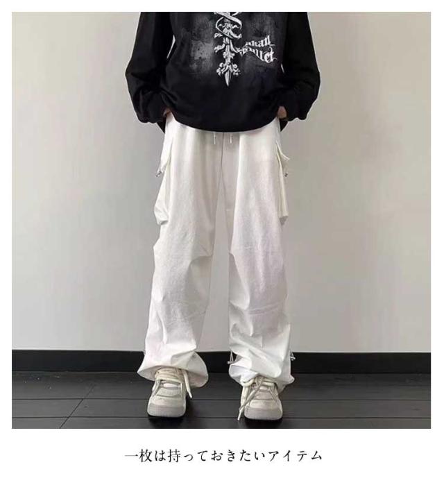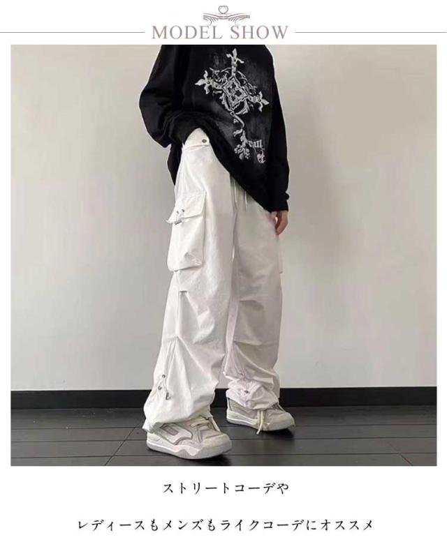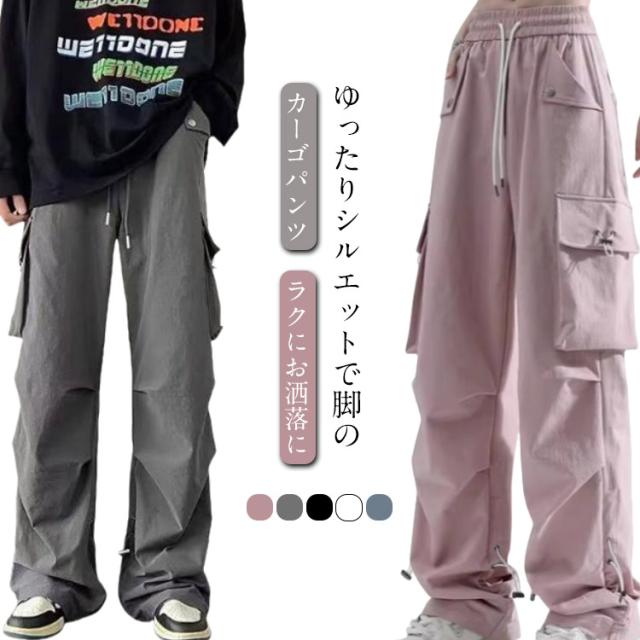 調節 メンズライク ズボン ワイド 楽 メンズ 無地 かわいい ウエストゴム おしゃれ レディース シンプル 動きやすい 黒 ルーズ 女性用 ボトムス 春 秋 薄手 10分丈 サイドポケット 男性用 ドローコード カーゴパンツ 作業着 カジュアル