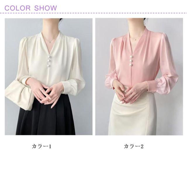 入学式 シャツブラウス パール 40代 オフィス 深Vネック 20代 結婚式 長袖シャツ 長袖 卒業式 深Vネック レディース 30代 上品 50代 通勤 フォーマル 大きいサイズ L XL 2XL 3XL