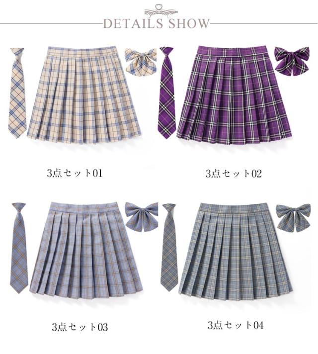 プリーツスカート チェック 3点セット タータンチェック 制服 スカート スクールスカート スクール 制服 リボンタイ 制服 ボウタイ 中学校 中学生 女子高校 文化祭 キッズ ネクタイ 子供服 キッズ服 女の子 制服スカート 発表会 お受験 140cm 150cm