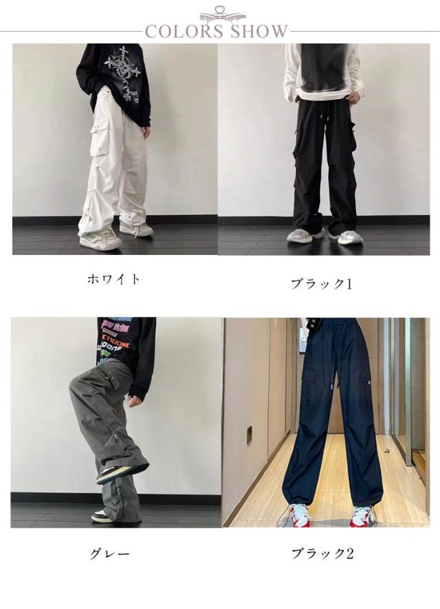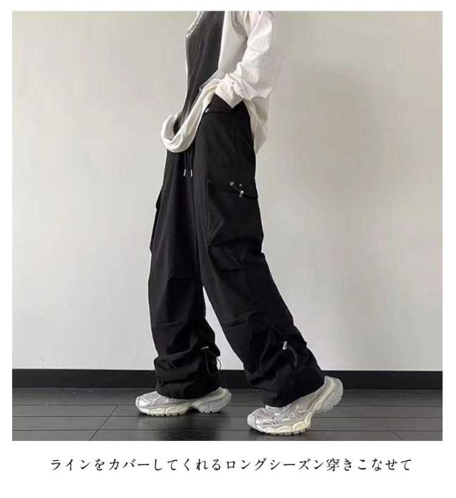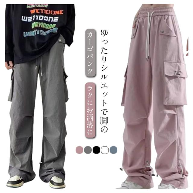 シンプル 秋 ルーズ ワイド メンズ ズボン ボトムス 楽 おしゃれ カーゴパンツ メンズライク 黒 無地 女性用 動きやすい レディース 男性用 春 カーゴパンツ 薄手 10分丈 サイドポケット ウエストゴム ドローコード 調節 作業着 カジュアル