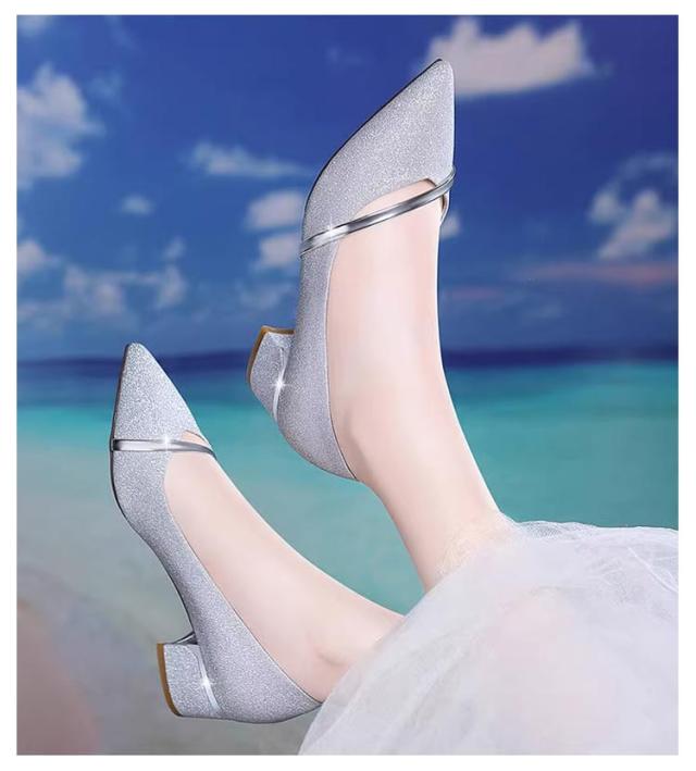 疲れない キラキラ 4cmヒール パンプス 結婚式 ポインテッドトゥ ピンヒール シューズ パンプス ストラップ パンプス 痛くない 柔らかい レディース 太めヒール シューズ 靴 パンプス 歩きやすい シューズ セパレート おでかけ オフィス