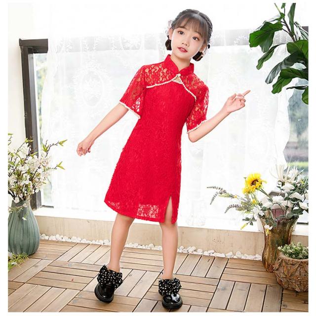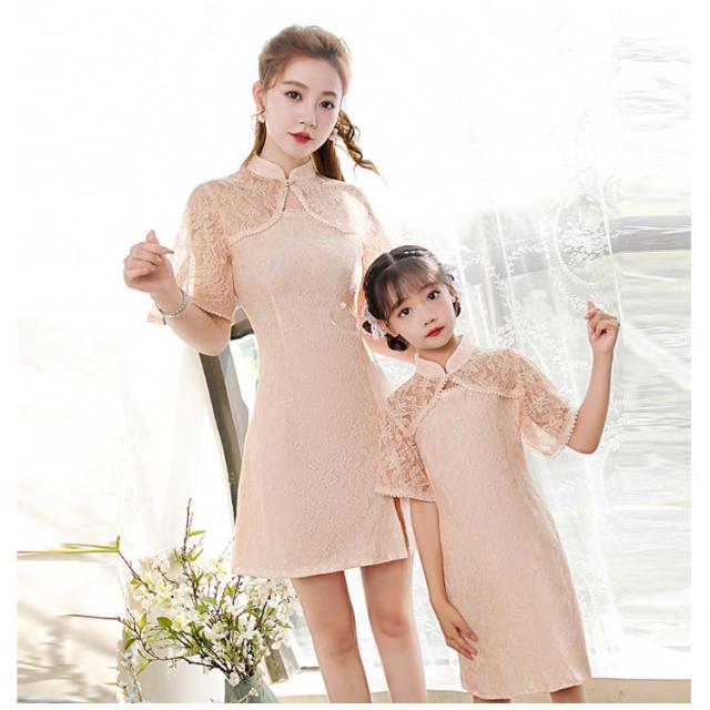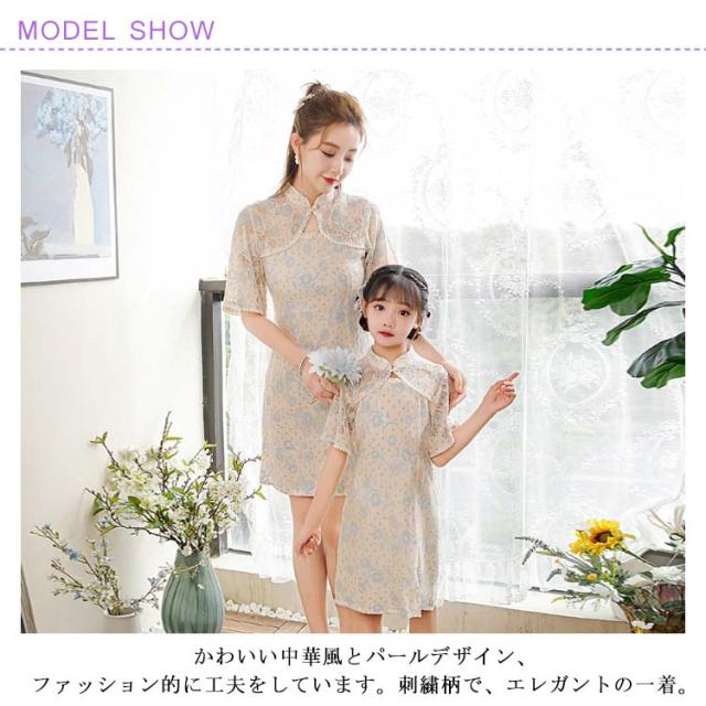 90 春 切り替え ワンピース ハロウィン 大人 可愛い ショート丈 レディース レース ペアルック 親子お揃い 女の子 中華風 民族衣装 ペアルック チャイナドレス 夏 パール調 チャイナ服 写真撮影 文化祭 エスニック 子供 100 110 120 130 140 150 S M L XL