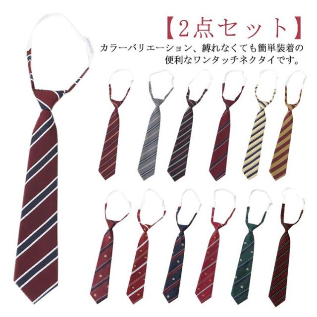 ネクタイ 制服 ワンタッチネクタイ 制服 簡単 スクールワンタッチネクタイ スクールタイ ワンタッチ かわいい 2点セット ストライプ おしゃれ クイックタイ 学生 卒服