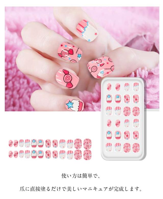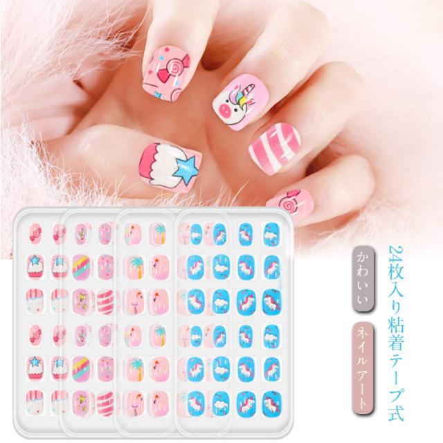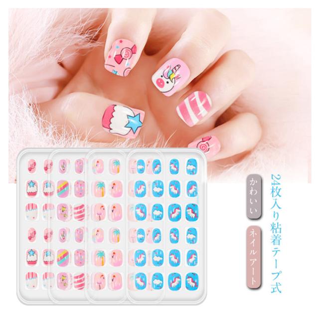 貼るだけ ネイルシール 子供用 かわいい 簡単ネイル キッズ 子ども用 ネイルステッカー 子供用 ネイルパーツ 粘着テープ式 ネイルアート 24枚入り ネイルチップ こどもネイル プレゼント ギフト