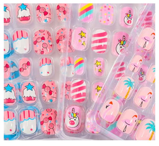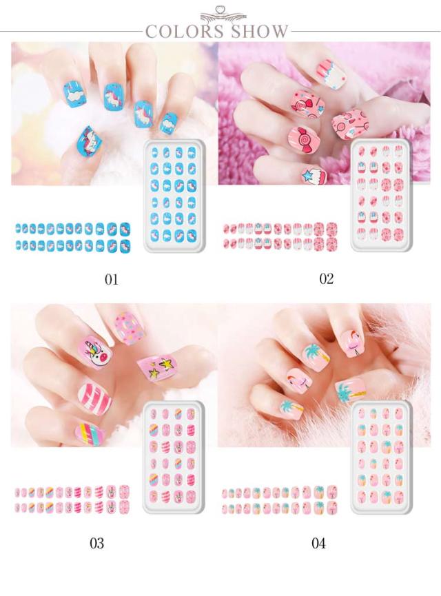 | 24枚入り粘着テープ式 キッズ向けのキュートでスタイリッシュなネイルアート 使い方は簡単で、爪に直接塗るだけで美しいマニキュアが完成します。 | |