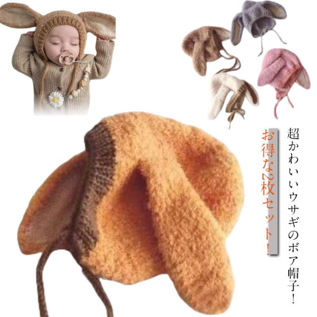 ニット帽子 耳当て 耳付き 帽子 うさぎ耳付き うさぎ うさ耳 冬 ボア ニット帽 赤ちゃん うさ耳 2枚セット 裏起毛 秋冬 2枚セット ベビー 男の子 キッズ 子供用 女の子 可愛い 新生児 記念撮影 出産祝い ギフト 保育園 出産祝い 記念撮影