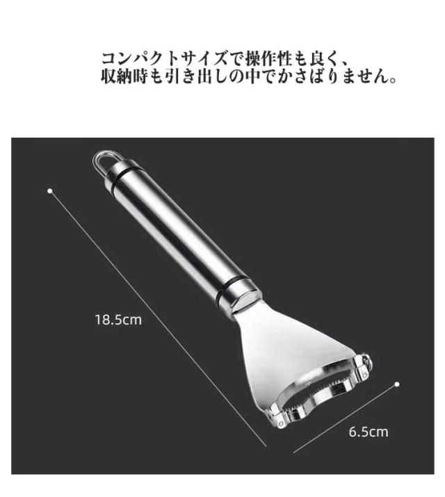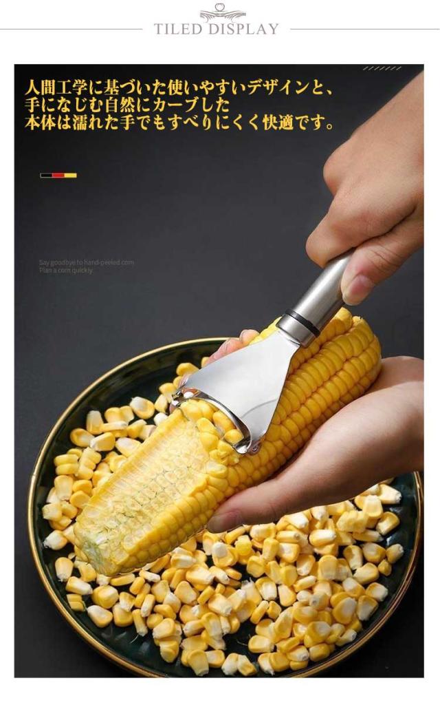 | とうもろこしの実を簡単にカットできるコーンピーラーです。 人間工学に基づいた使いやすいデザインと、手になじむ自然にカーブした本体は濡れた手でもすべりにくく快適です。 玉ねぎの剥離だけでなく、他の食材の切り分けにも活用できます。 人参やキュウリなど、料理の手間を軽減し、便利さを提供します。 ステンレス素材を使用、油汚れに強く、お手入れが簡単で錆びにくい。 料理の下ごしらえを短縮する。とうもろこしを素早く削ぎ落とすことができます。 コーンスープやサラダ、トッピングなどに便利にお使いいただけます。 コンパクトサイズで操作性も良く、収納時も引き出しの中でかさばりません。 | |
