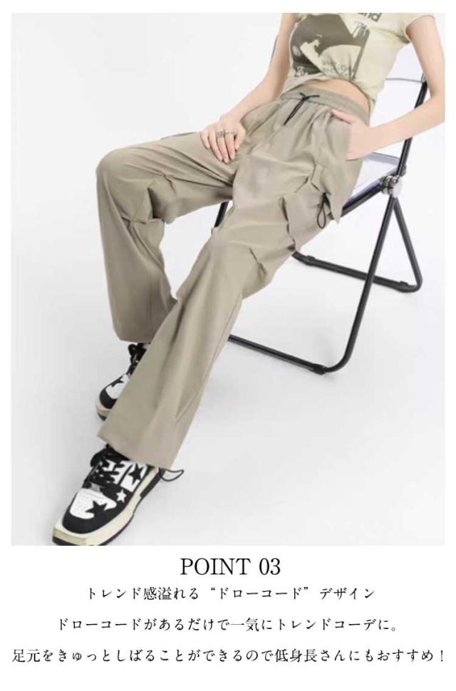 | 大人カジュアルに最適! 1枚+で旬なコーデが完成 大人の着こなしにカーゴパンツで”抜け感”をプラス。 ショート丈トップスを合わせるなど、オシャレ&今っぽいスタイリングが簡単にできて着回し抜群! POINT 02 体型が隠せるゆるっとした着こなし ゆったりとしながらも立体感のあるデザインで、 スタイルアップ&気になる脚をキレイにカバー。 POINT 03 トレンド感溢れる“ドローコード”デザイン ドローコードがあるだけで一気にトレンドコーデに。 足元をきゅっとしばることができるので低身長さんにもおすすめ! POINT 04 インパクトになる!大きめポケット 立体感のあるドローコード付きのポケットがお洒落ポイントに。 POINT 05 コーデに合わせやすい豊富なカラバリ 普段使いしやすい定番カラーを取り揃えております。 色違いで持ったりリンクコーデにもオススメ。 | |