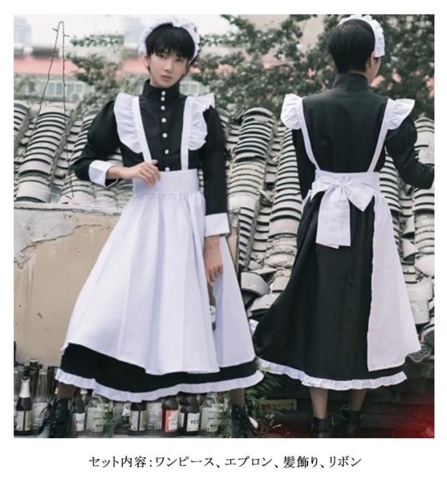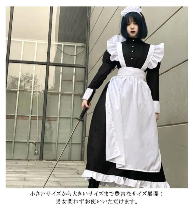 送料無料 メイド服 ロング 長袖 コスプレ エプロン クラシック カチューシャ 黒 大きいサイズ 可愛い 男女兼用 衣装 可愛い 衣装 メイド服 レディース メンズ メイド 男の娘 コスチューム 仮装 男性 ハロウィン カフェ イベント 学園祭 文化祭 余興 宴会